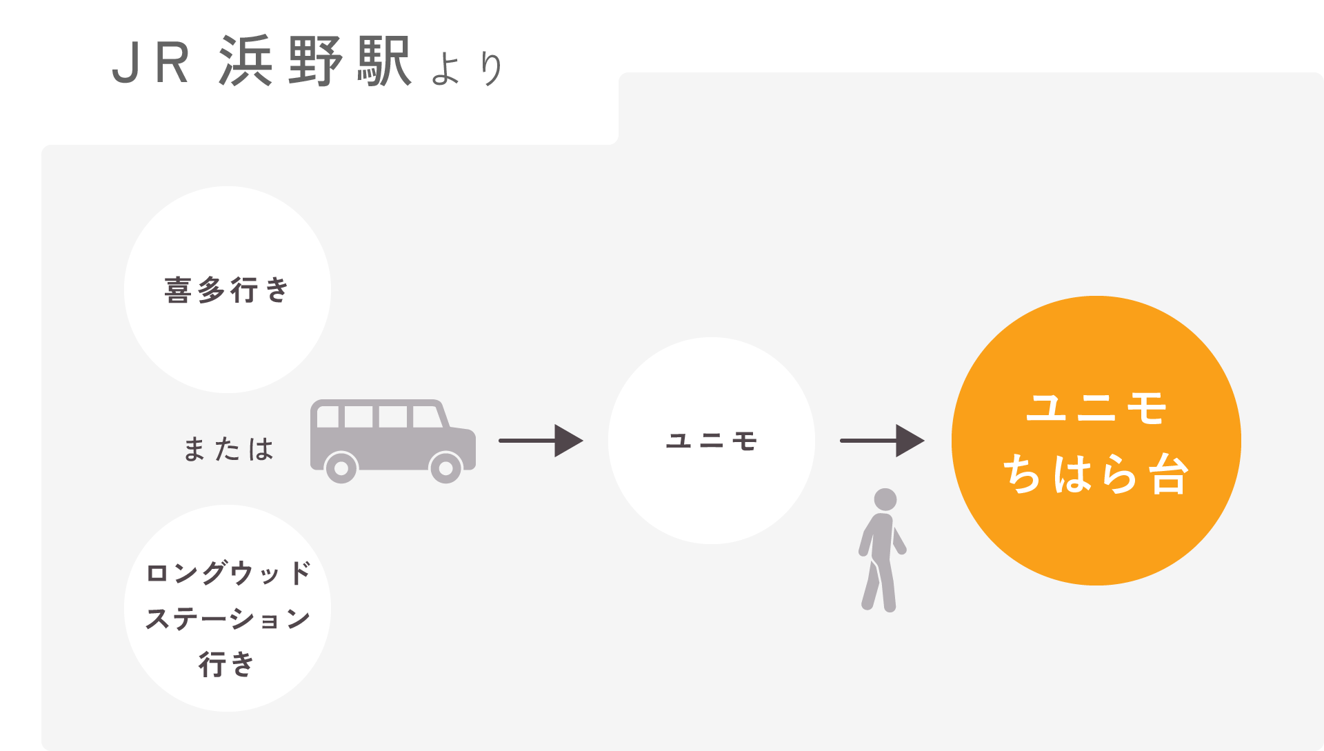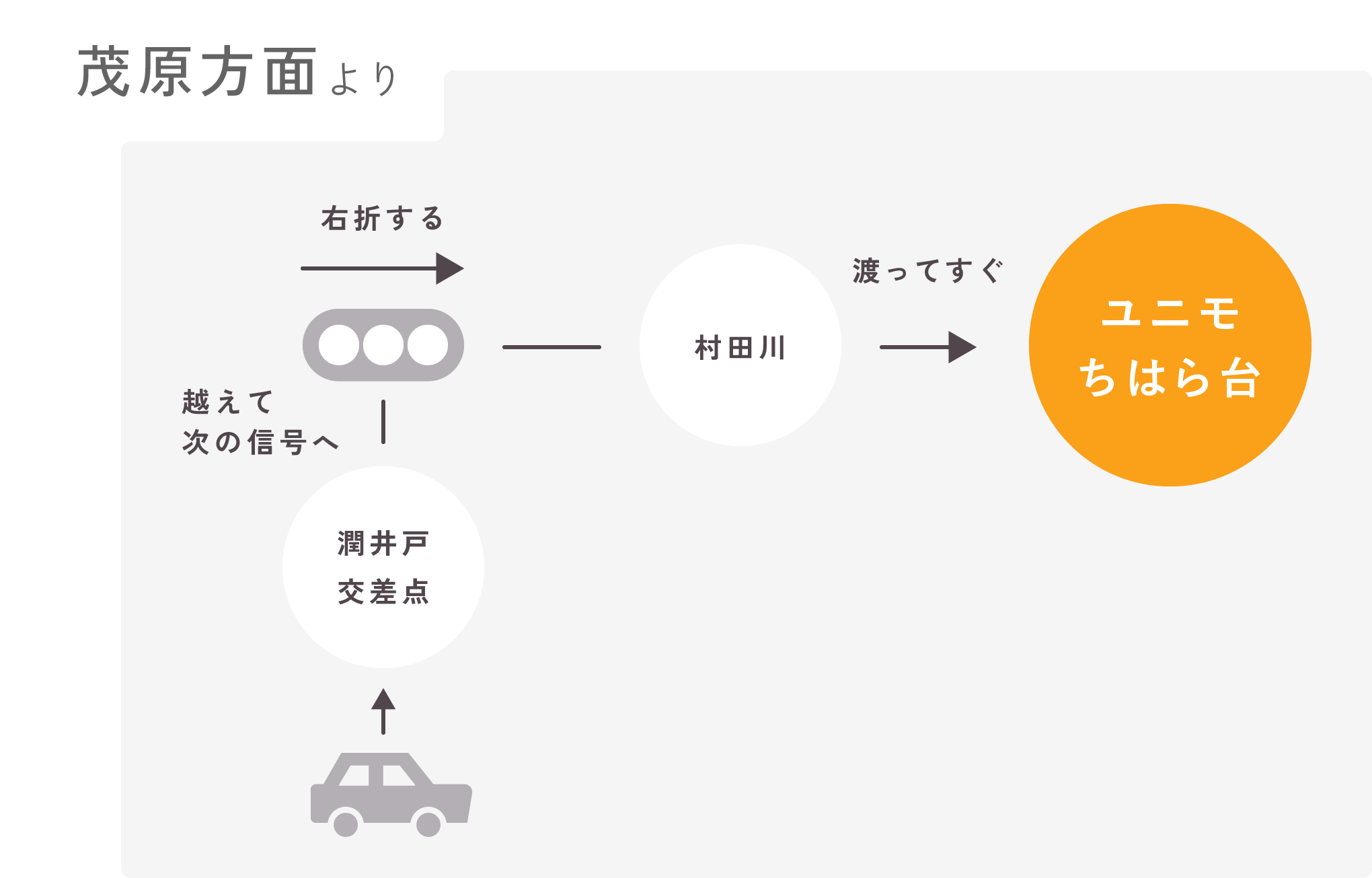 お越しのルートを選択するとユニモちはら台までのルートが表示されます