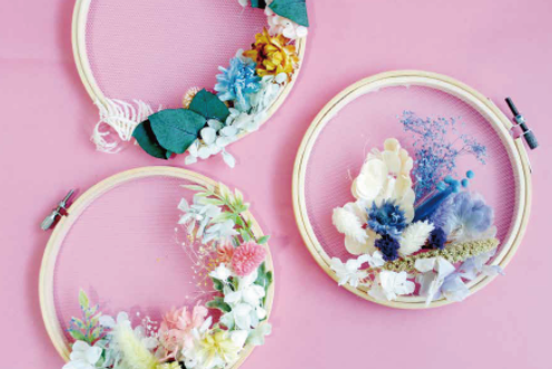 刺繍枠のフラワーアレンジメント