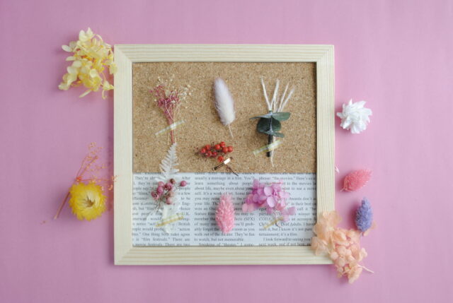 春を感じるカラーのドライフラワーやプリザーブドフラワーをフレームに貼り付け、飾れば春を感じる華やかなインテリアをつくります。背景やお花の種類も選べるので世界に一つのオリジナルフレームが完成します。