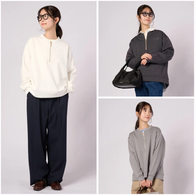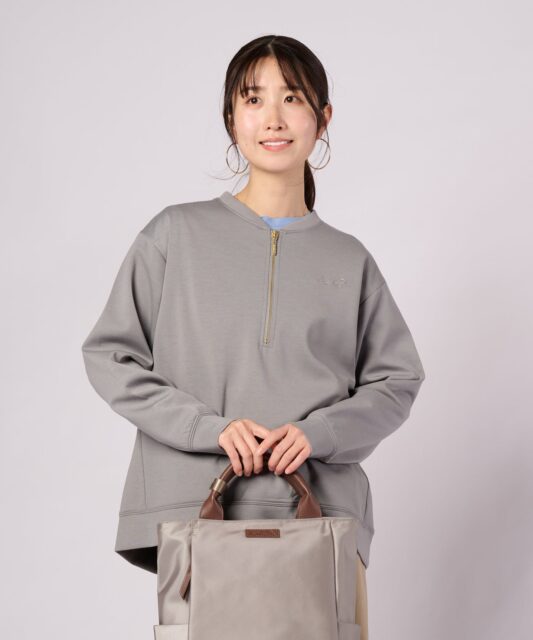 程よい抜け感を演出するハーフジップデザインのスウェット