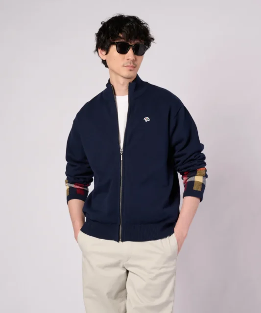 パーマーチェックカフ ニット スタンドフルジップ
