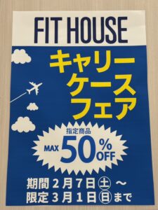 キャリーケースが最大50%OFFとなっております。
