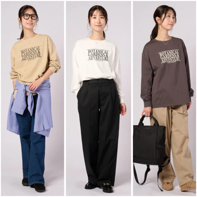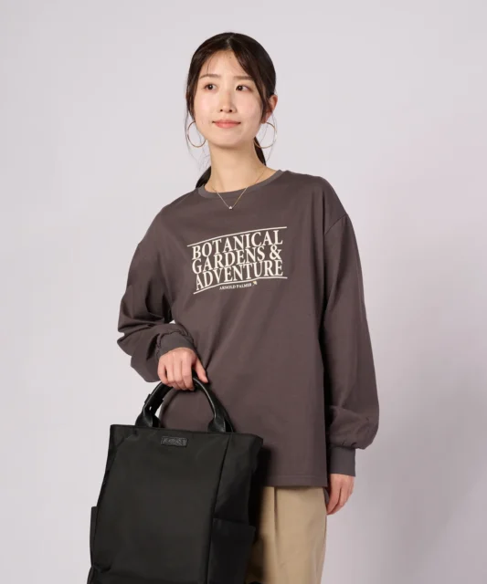 シンプルながらも上品に見える3段ロゴプリントが目をひくロングスリーブTシャツ