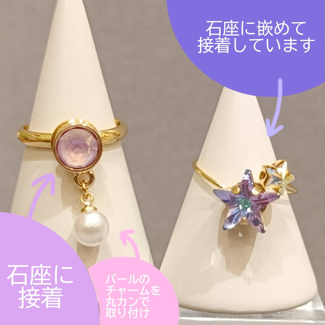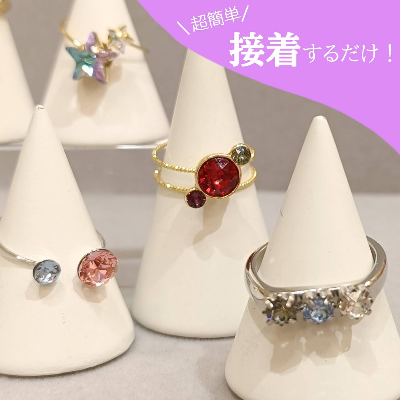 接着剤でつけるだけでできる簡単なタイプや石座というパーツに嵌めて作るタイプとあります✨