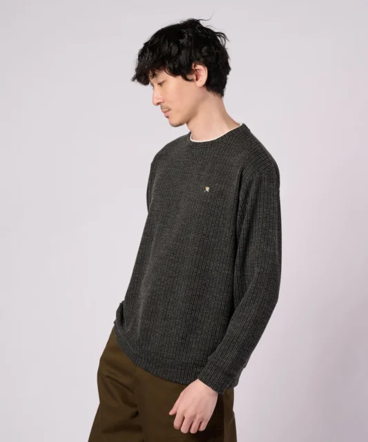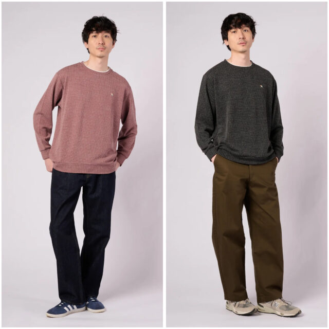 素材には、ジャガード編みでワッフルのような凹凸感を持たせた生地を採用