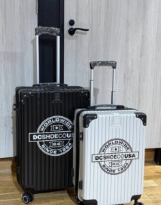 フロントに大きくプリントされたブランドロゴが目を引くキャリーケース✈️