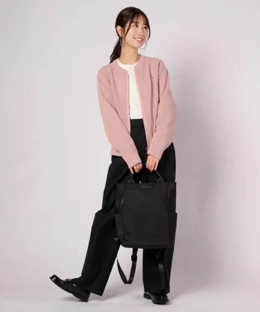 ポリエステル素材ならではの軽さがありつつ、程よい厚みで季節の変わり目にも取り入れやすい1枚に仕上げています。