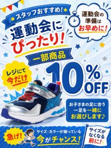 ゲンキ・キッズプラス / ファッション・ファッショングッズ 1F MAP38 ショップページへ 明日からセール開始!! 2026.04.24 更新 今回、リピーター様が多い スーパースター スキルシューター ラブラッシュ 10%OFFセール!! 期間限定となりますのでお急ぎくださ~い!!